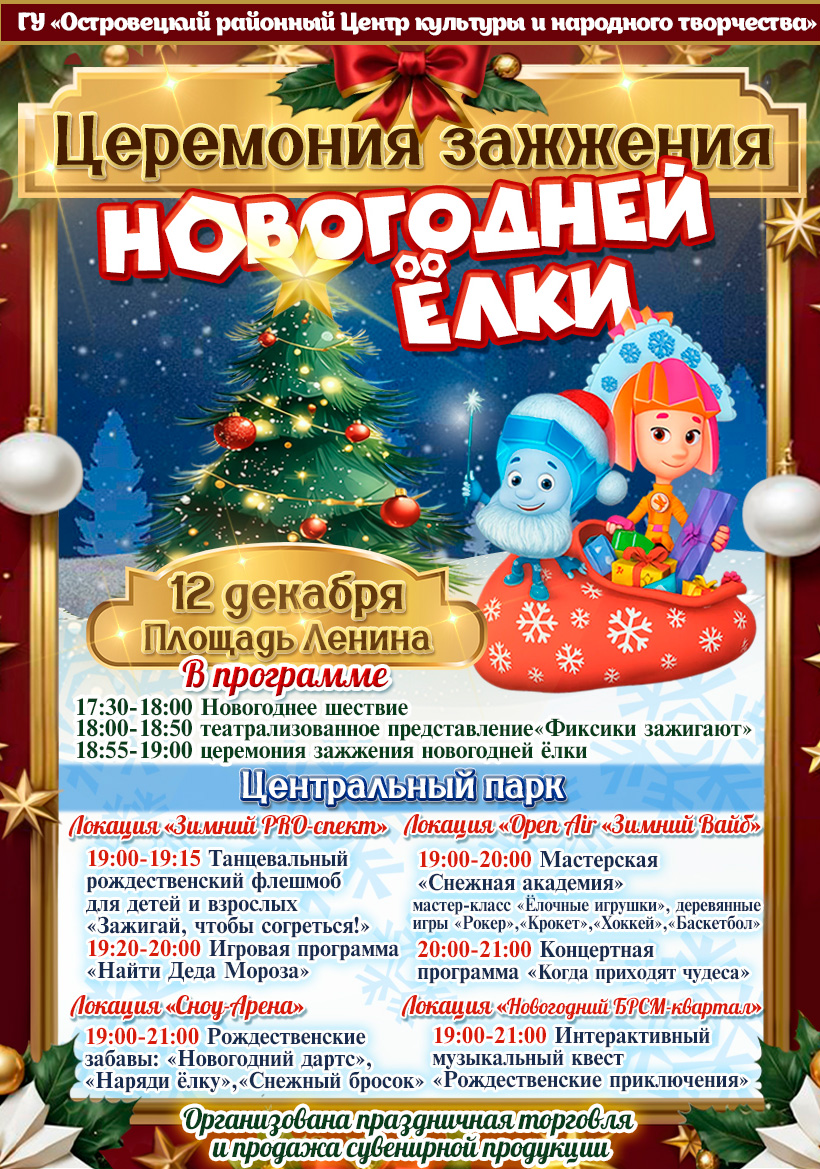 1️⃣2️⃣ декабря состоится торжественное зажжение новогодней ёлки на площади Ленина🤩. В программе вас ожидает: ✔️Новогоднее шествие; ✔️ Театрализованное представление«Фиксики зажигают»; ✔️ Церемония зажжения новогодней ...