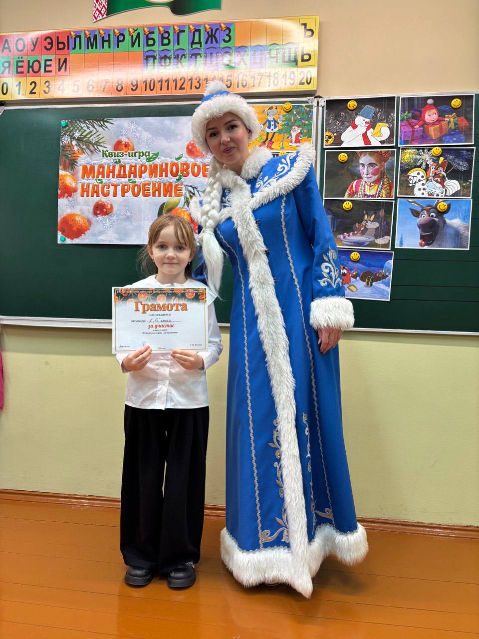 ❄️ Отдел нестационарного обслуживания населения государственного учреждения «Островецкий районный Центр культуры и народного творчества» порадовал учащихся 1 «Б» класса государственного учреждения образования «Средняя школа № 3 г. Островца» квиз-игрой «Мандариновое настроение» 🍊